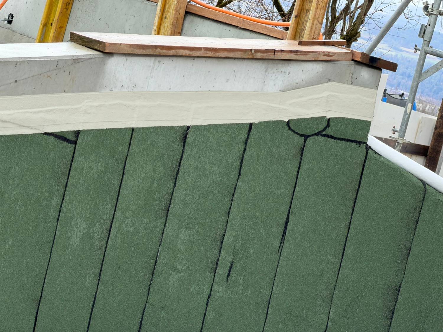 Als Spezialist für Gebäudeabdichtungen bieten wir Ihnen ganzheitliche Komplettlösungen, die einen nahtlosen Übergang zwischen Grundwasserabdichtung und Perimeterabdichtung sicherstellen. Durch die gezielte Ergänzung der Grundwasserabdichtung „Weisse Wanne“ mit Polymerbitumen-Abdichtungsbahnen und Flüssigkunststoffabdichtungen in den Perimeterbereichen lassen sich auch hohe Anforderungen und komplexe Detailausbildungen zuverlässig umsetzen ohne das Risiko unternehmensübergreifender Schnittstellen.
